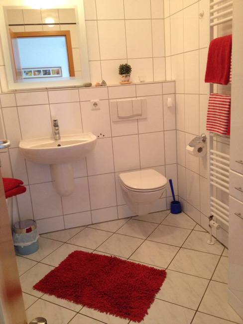 Das Badezimmer ist hochwertig ausgestattet und verfügt über eine Badewanne.